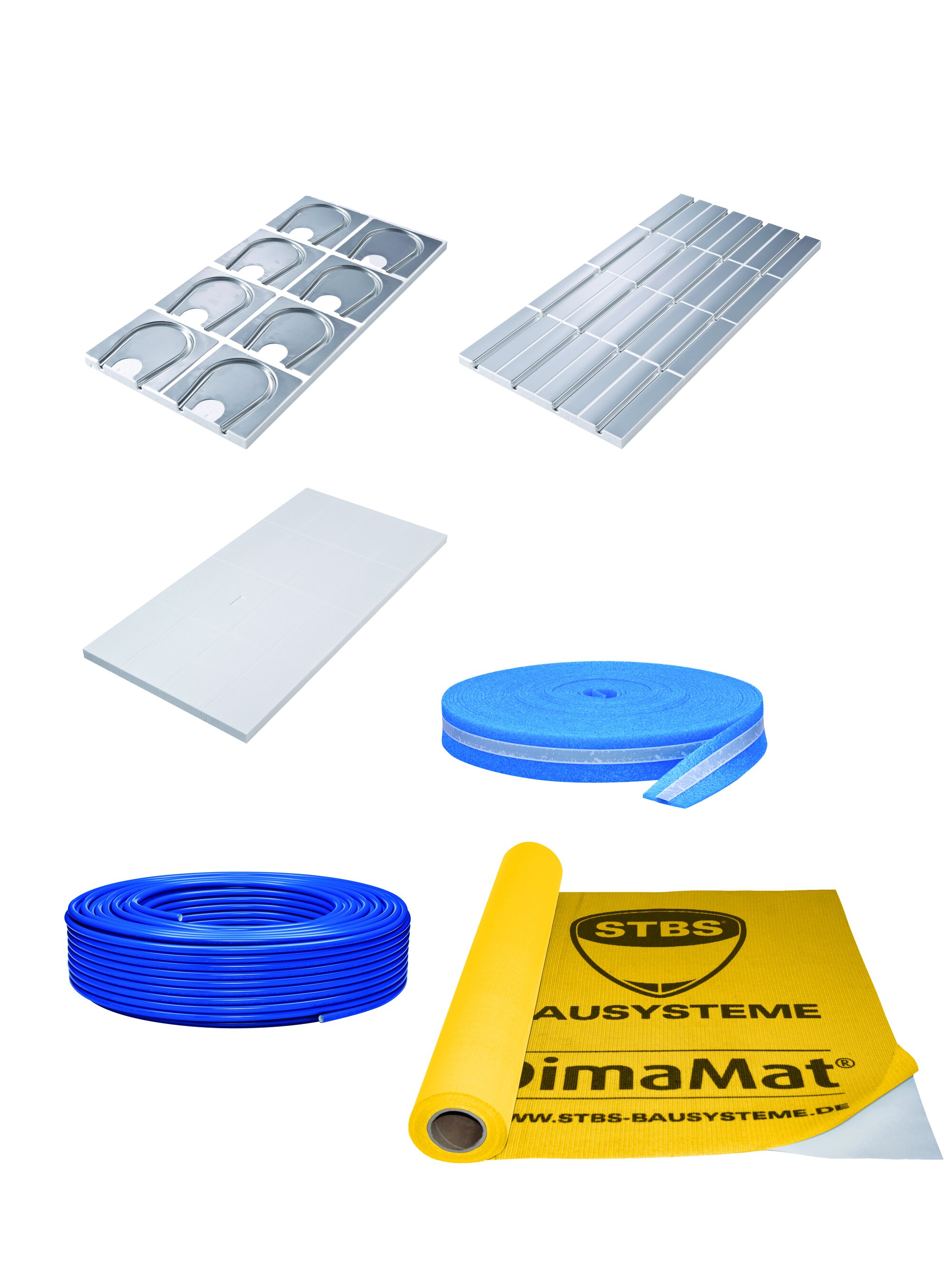 Fast-reacting drywall underfloor heating and cooling system without wet screed in 30 mm construction height with 125 mm or 250 mm pipe spacing